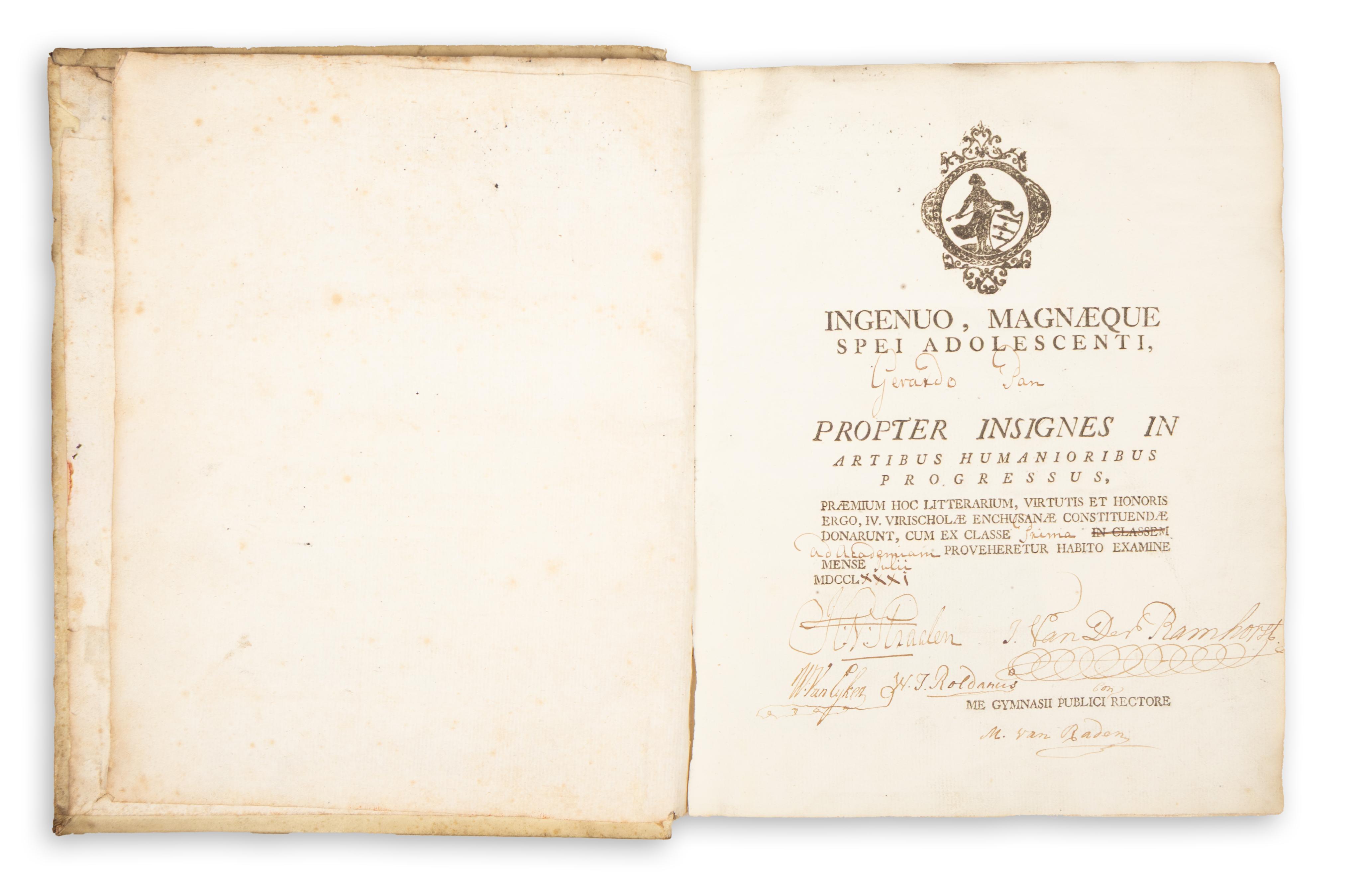 Lugd. Bat. : Apud Samuelem Luchtmans ; Amstelaed. : Apud J. Wetstenium et G. Smith. 1 + [66] + 962 + [24] p. A címképmetszet hiányzik! A helyette bekötött nyomtatott első levélen valószínűleg a leideni egyetemtől Gerardo Pan számára ajándékozott könyv az elvégzett tanulmányaiért, 1781-es dátummal. Lent a rektor és a tanárok aláírásaival: Van der Ramhorst - Johannes Roldanus - Straalen - Van Lyken. A szövegközti gyönyörű illusztrációkat François van Bleyswyck készítette.