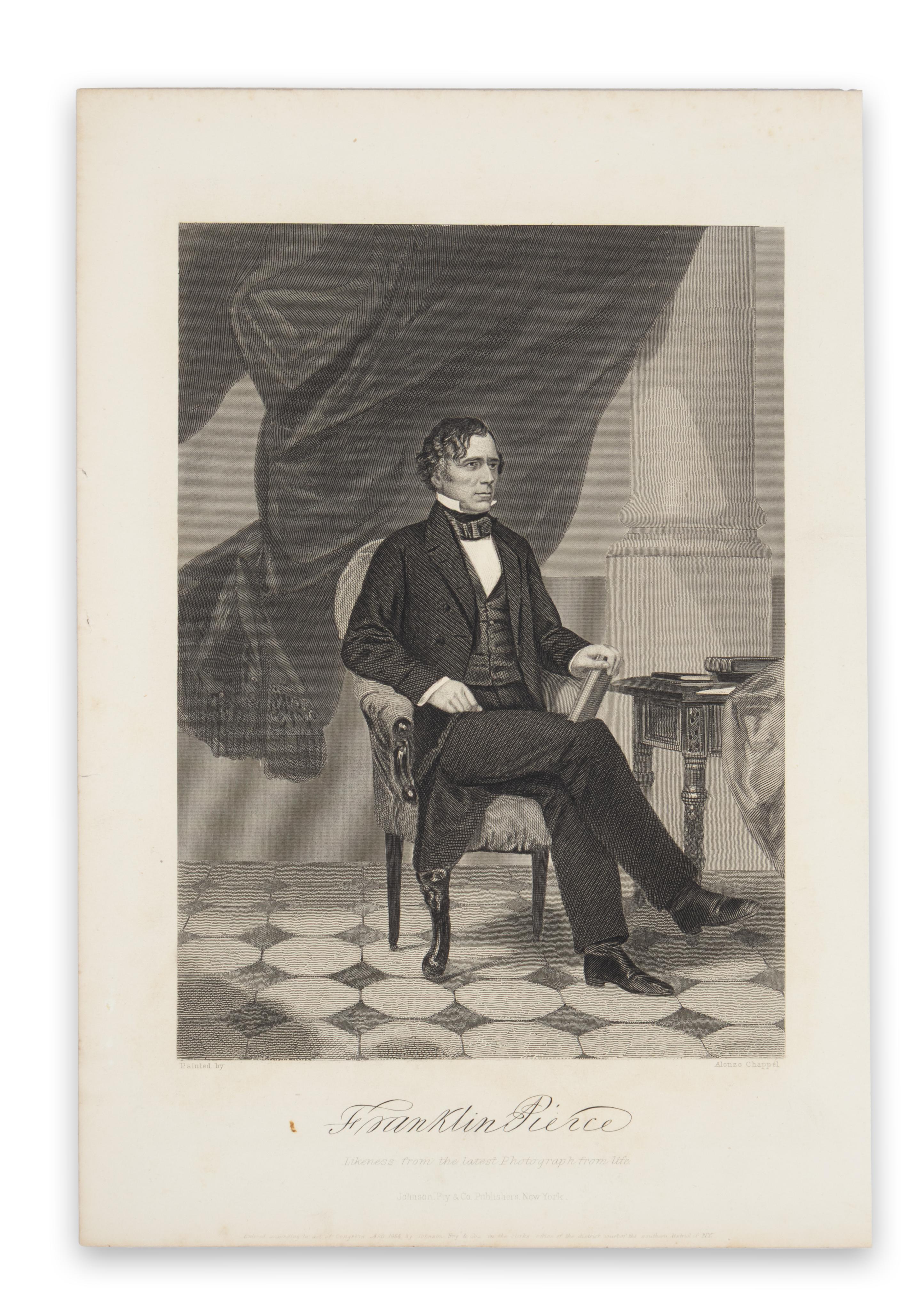 Albert G. Allen kinevezése a washingtoni hajó- és lőszergyár tengerészeti felügyelőjévé (Navy Agent). Egy nyomtatott oldal, papírfelzetes viaszpecséttel. Franklin Pierce, az Egyesült Államok tizennegyedik elnökének saját kezű (autográf) aláírása jobbra alul, mellette James Cochran Dobbin tengerészeti miniszter ellenjegyzésével. Kelt: Washington, 1853. június 18. Mérete: 275 x 350 mm.