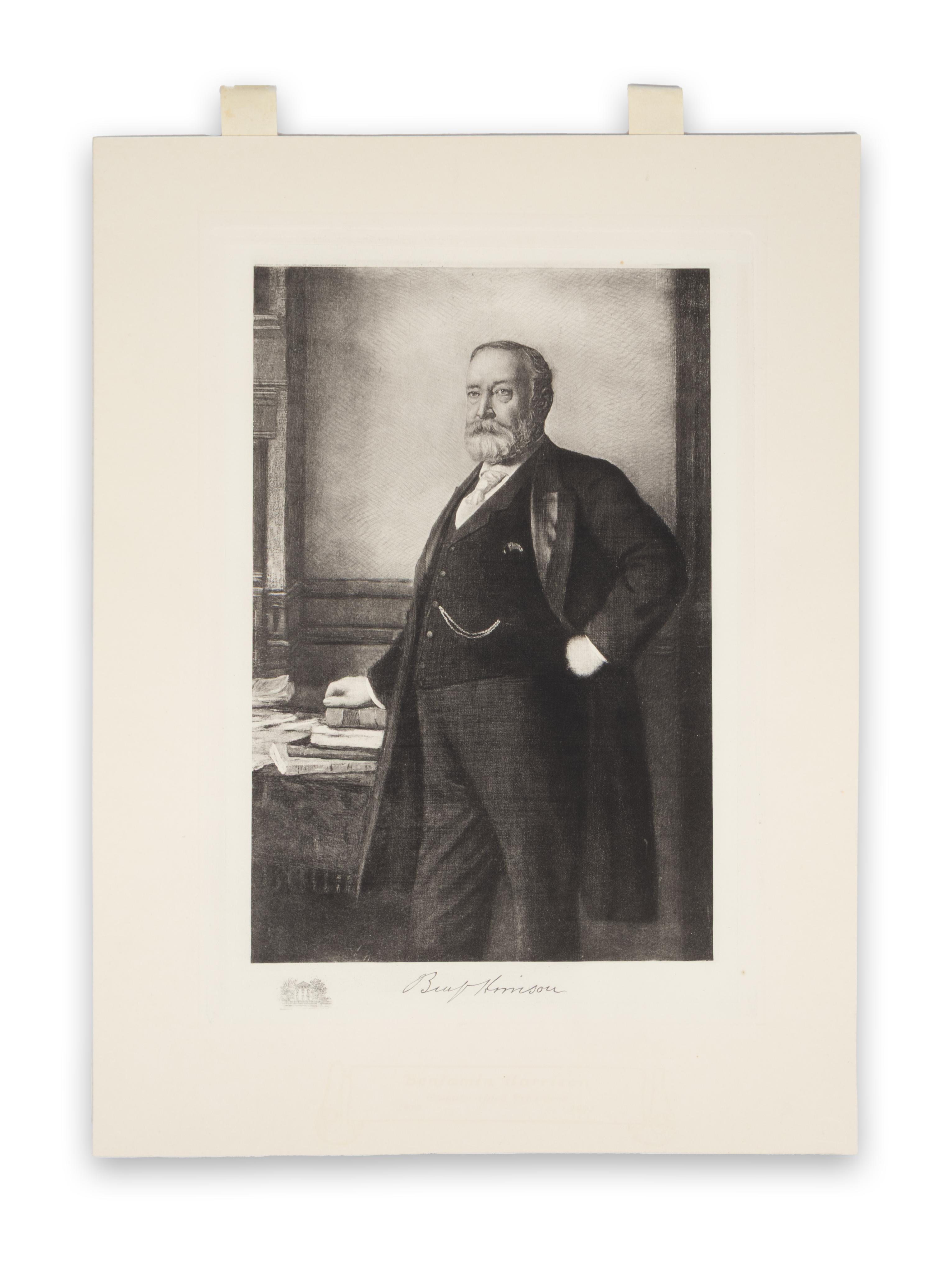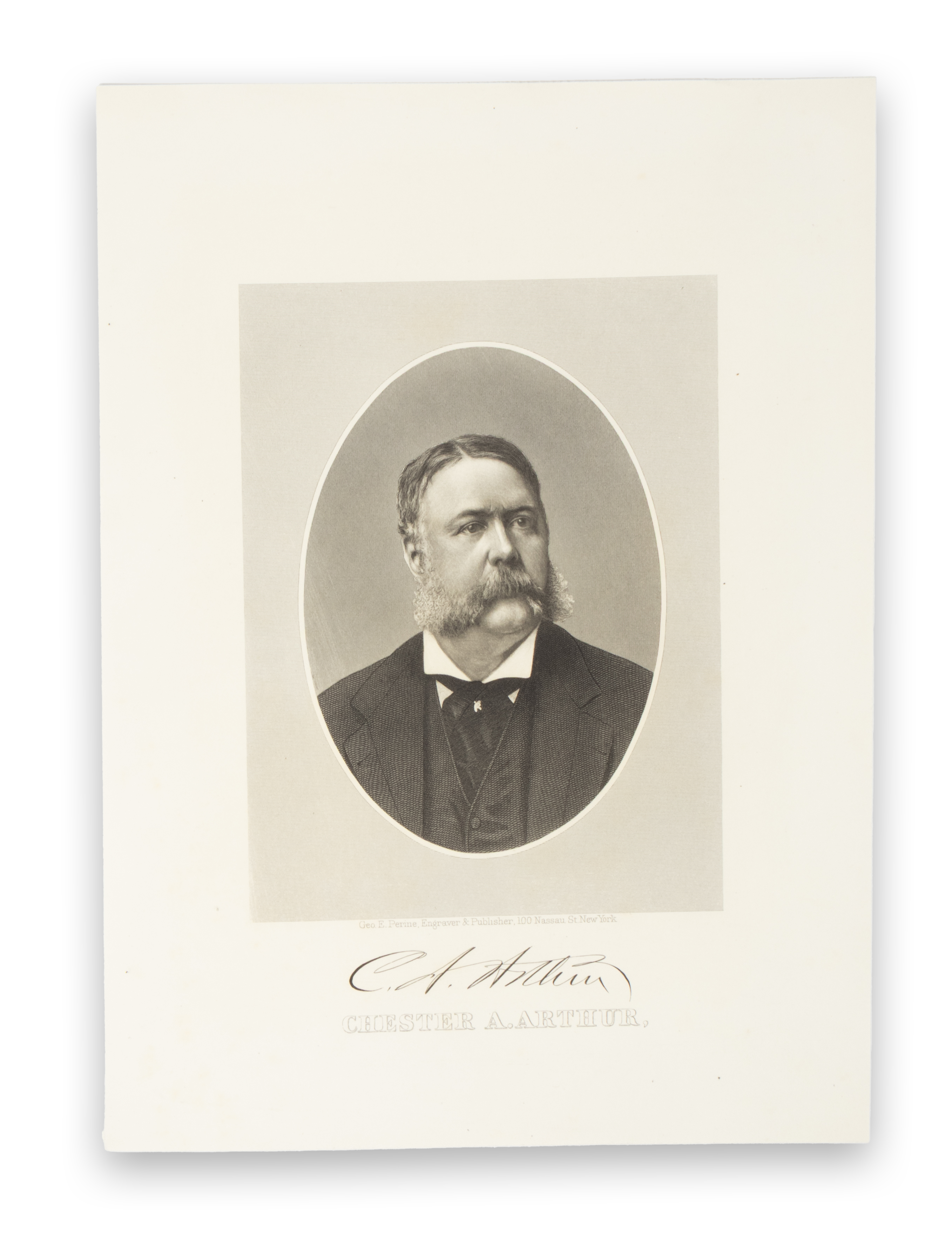 With: Steel engraving of the President, with pencil-dedication to senator Ralph Cameron. Dimensions: 265 x 200 mm.