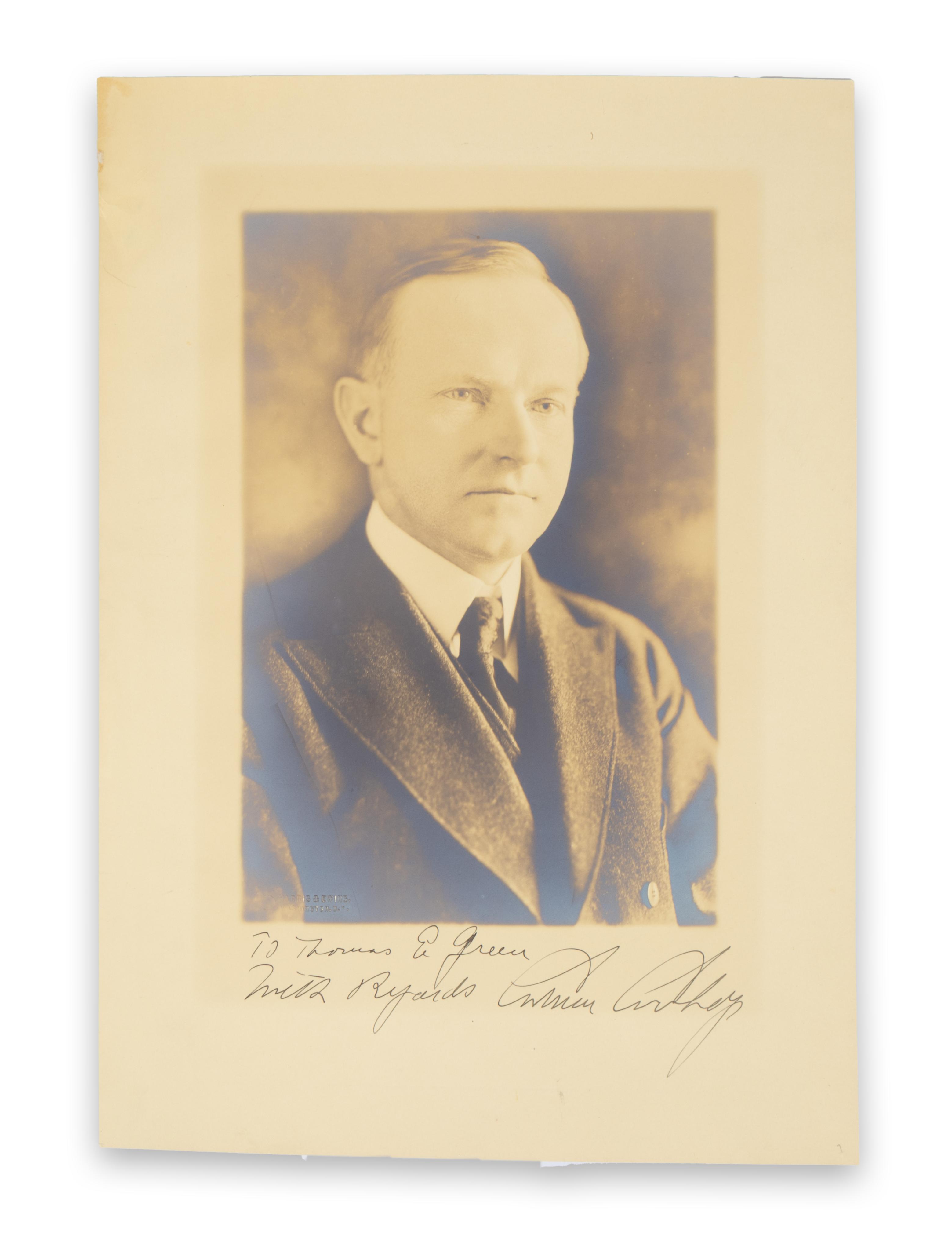 Hozzá: Acélmetszetű ülő alakos kép az elnökről, alul ceruzás dedikáció Ralph Cameron szenátornak. Mérete: 265 x 200 mm.