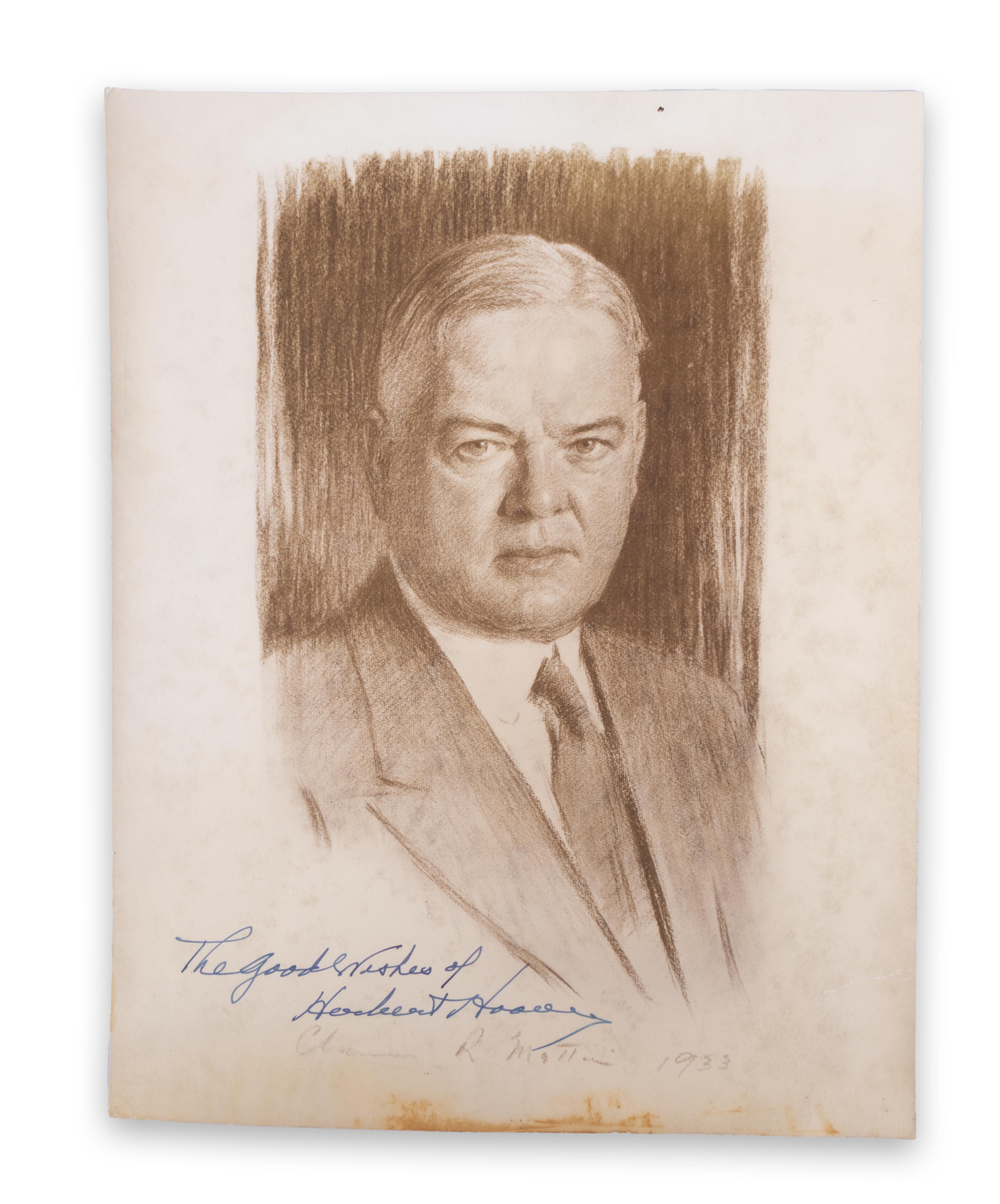 With: Inscribed photograph after a drawing of the President. Dimensions: 250 x 190 mm.