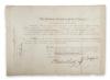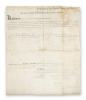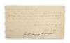 Hozzá: William Henry Harrison saját kezű (autográf) ellenjegyzése egy hivatalos utasításon Knox megye földmérője részére, amelyet még Indiana Territórium kormányzójaként írt alá. Kelt: Saint Vincennes, 1801. november 16. Mérete: 108 x 185 mm.