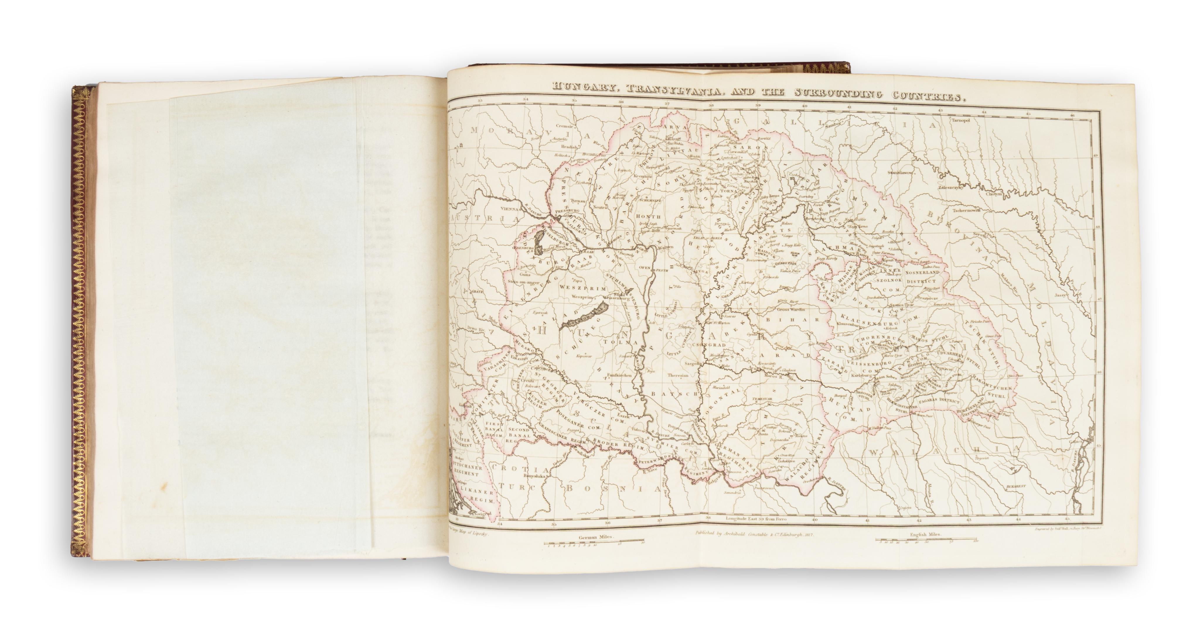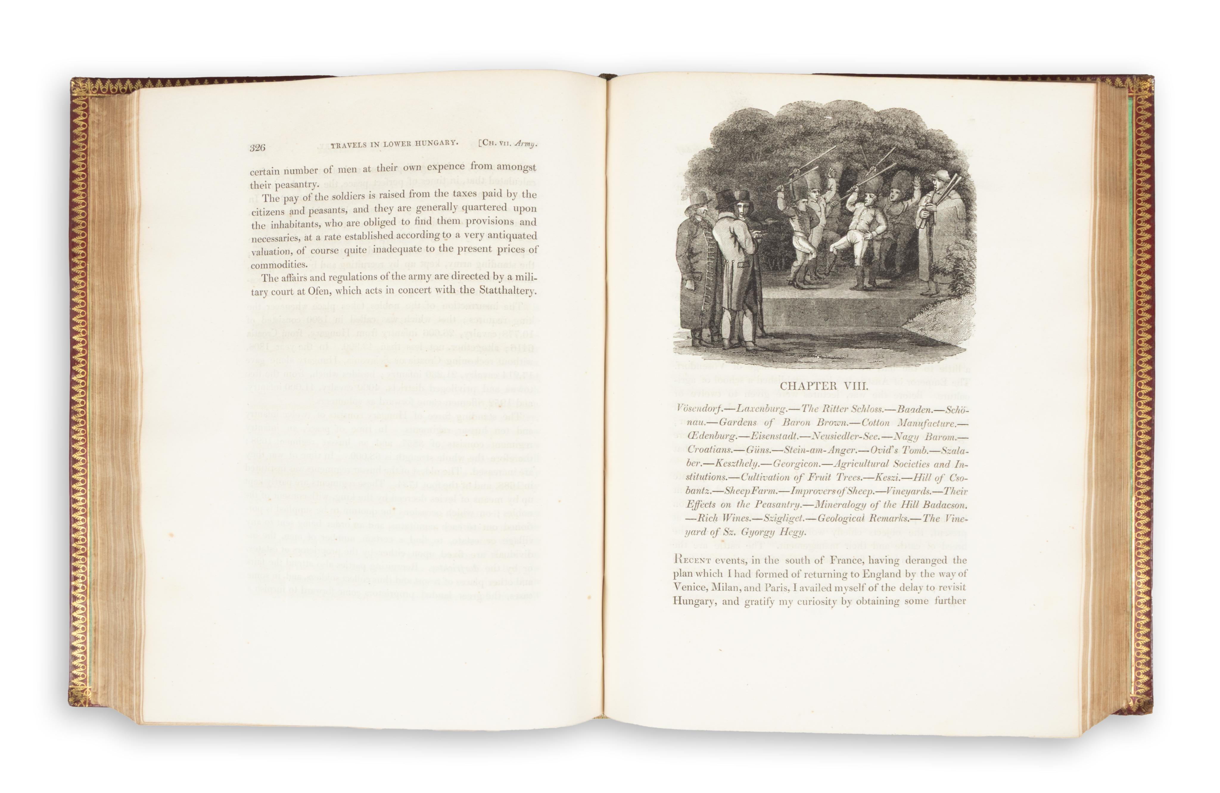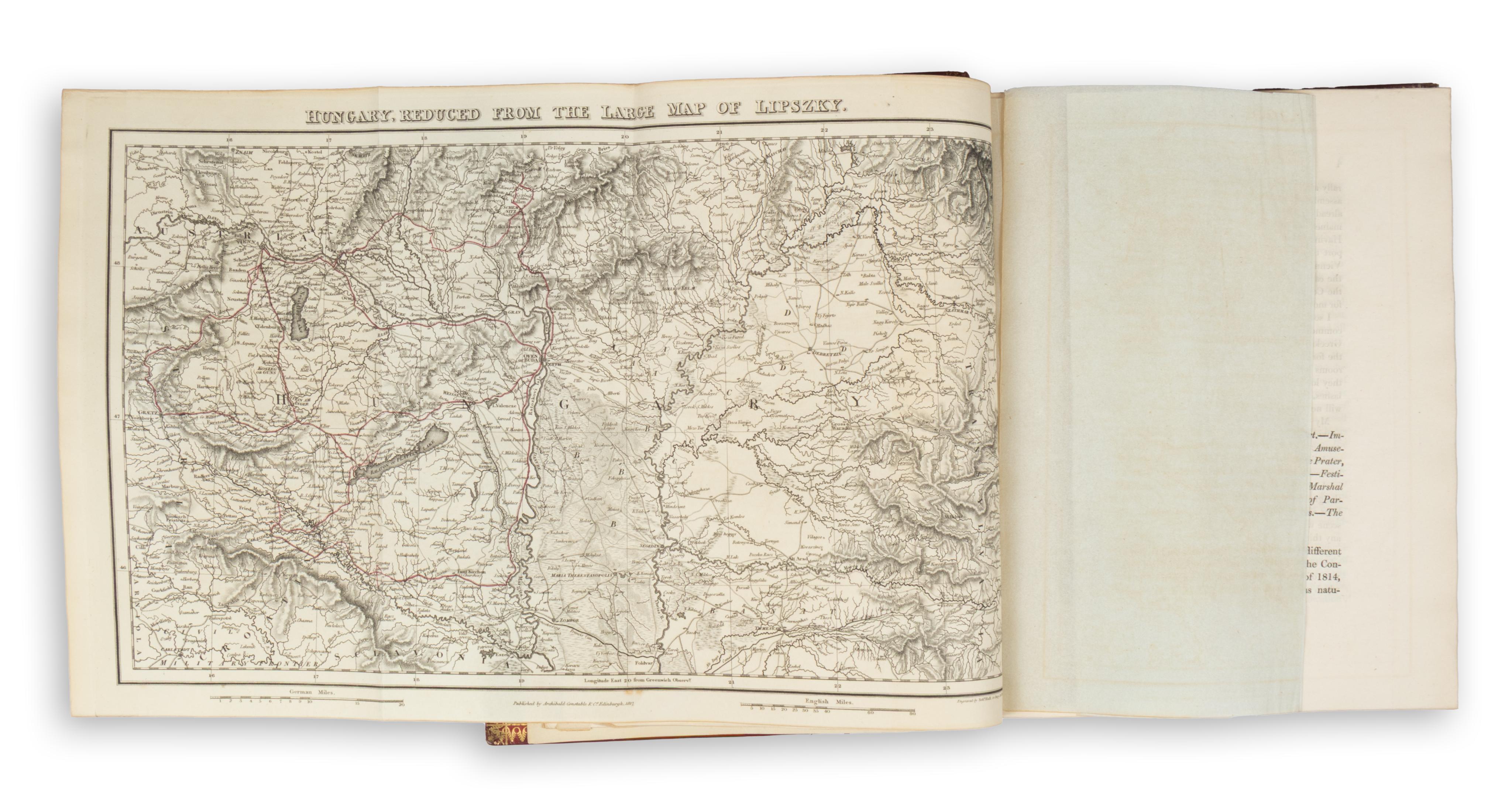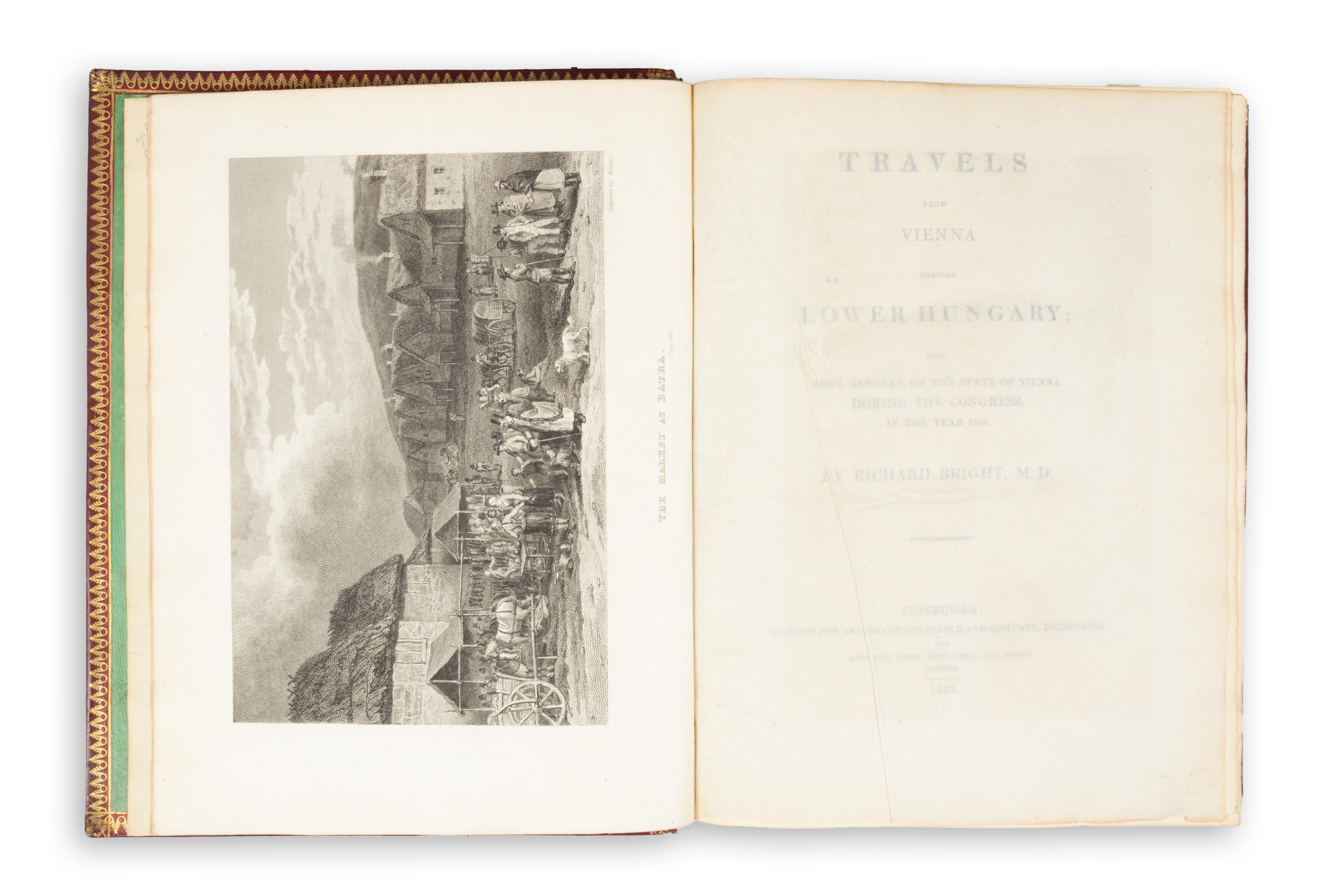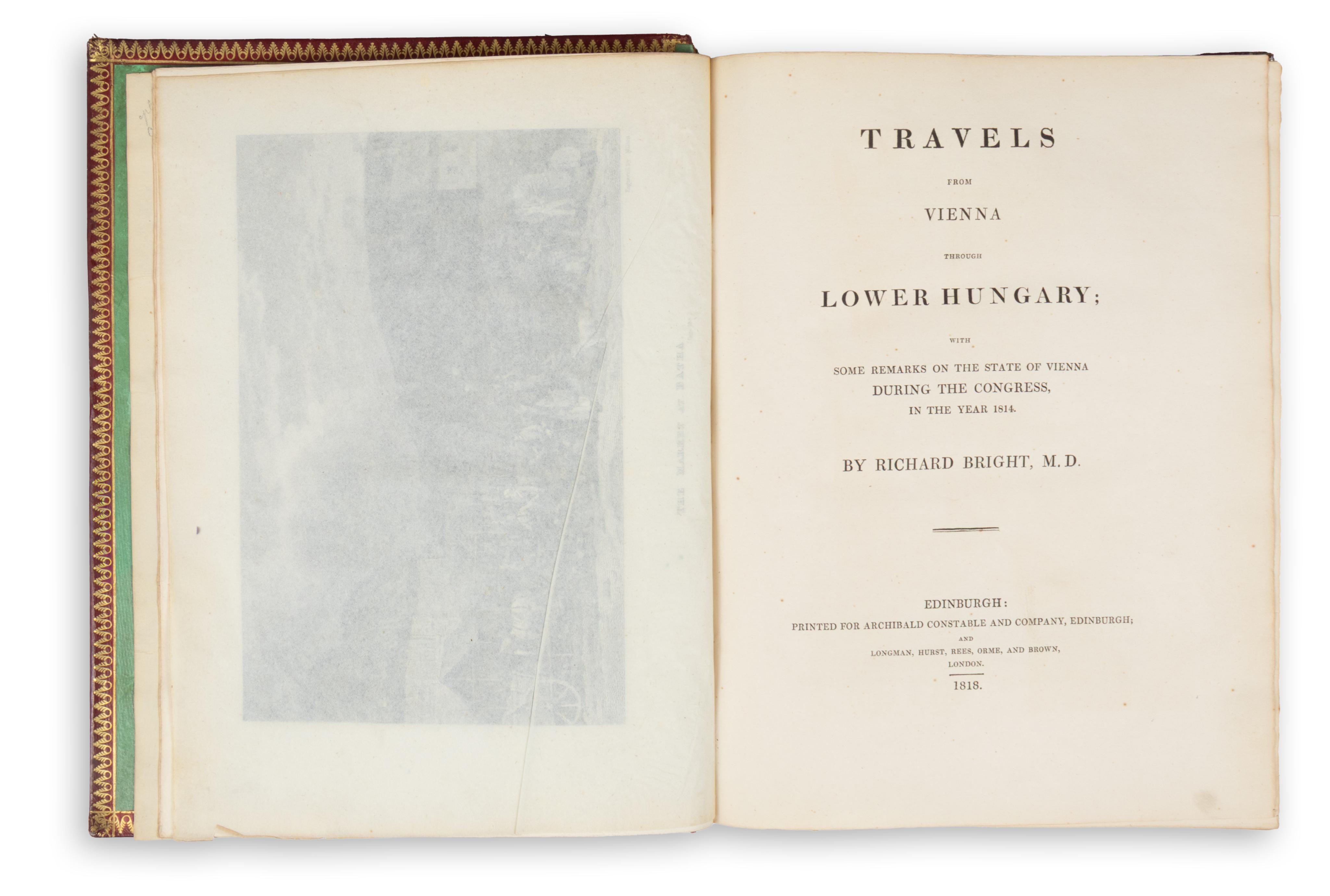 Richard Bright (1789–1858) was a prominent figure in nineteenth-century medical history. In this work — an important and foundational travel account of Hungary — he provides detailed observations on Hungarian society, mining resources, agriculture, geography, and Roma culture following his stay at the 1814 Congress of Vienna. The appendix contains information relating to agricultural statistics. At the end of the volume there is a small comparative vocabulary of English–Gypsy, Spanish–Gypsy, and Hungarian–Gypsy terms. A bound errata leaf is inserted at the front.