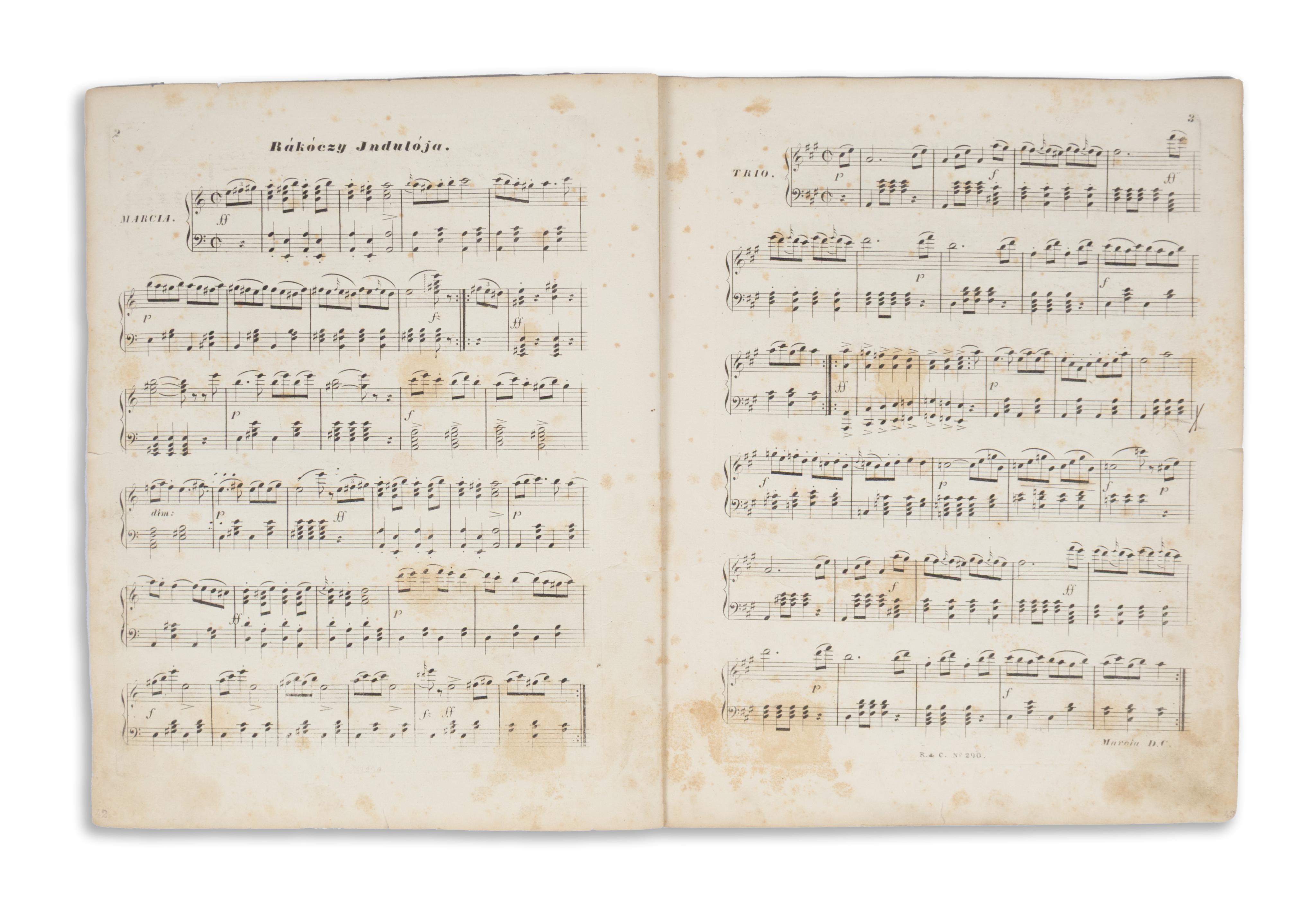 The Rákóczi March was written by Nikolaus Scholl, the conductor of the 32nd Regiment of the K. U. K. Army in 1820. He used the motifs of the instrumental and sung versions of the Rákóczi-song. It was published in Vienna in 1820, arranged for piano 2 and 4 hands. The March was adapted by many, including Ferenc Erkel and Ferenc Liszt, but the best known is Hector Berlioz's orchestral work, which made the Rákóczi March known throughout the world. After the Compromise, it was included in the publication The Three Songs of the Nation, along with the Anthem and the Preface.