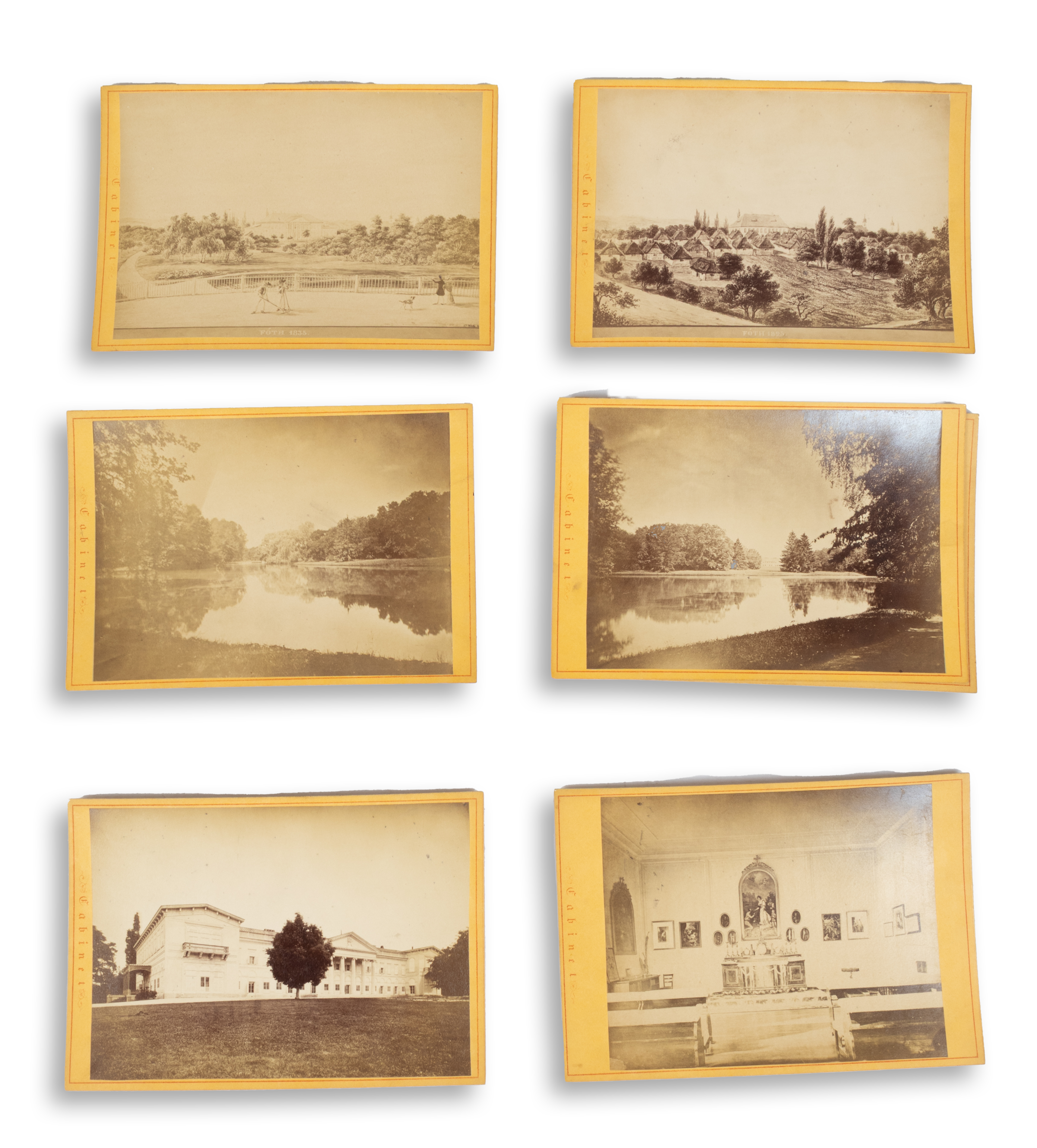 Fóthi Emlék. 21 kabinet fotó míves dobozban a Károlyi kastélyról.