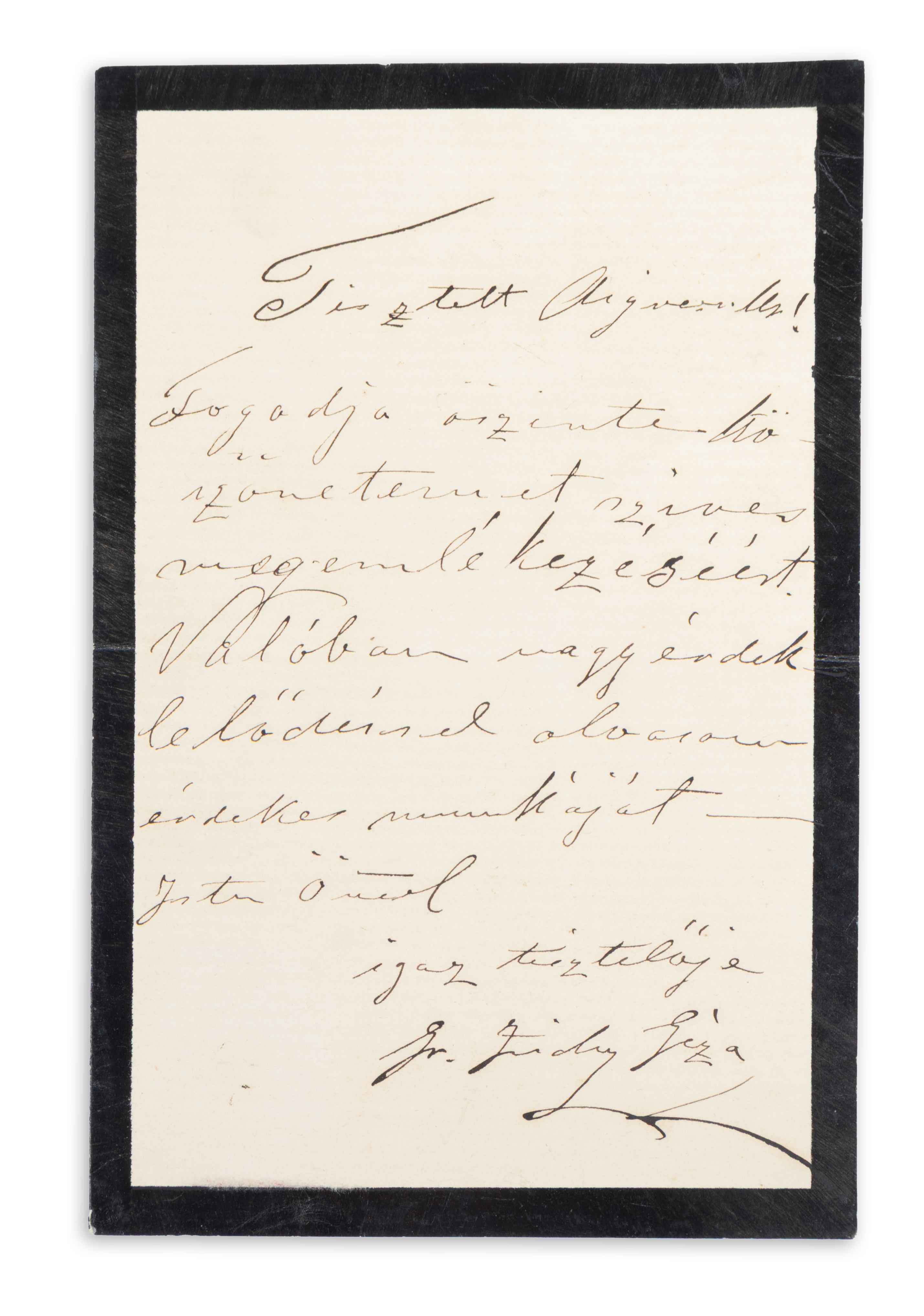 Autograph letter of Géza Zichy, Hungarian writer, musician, and politician.