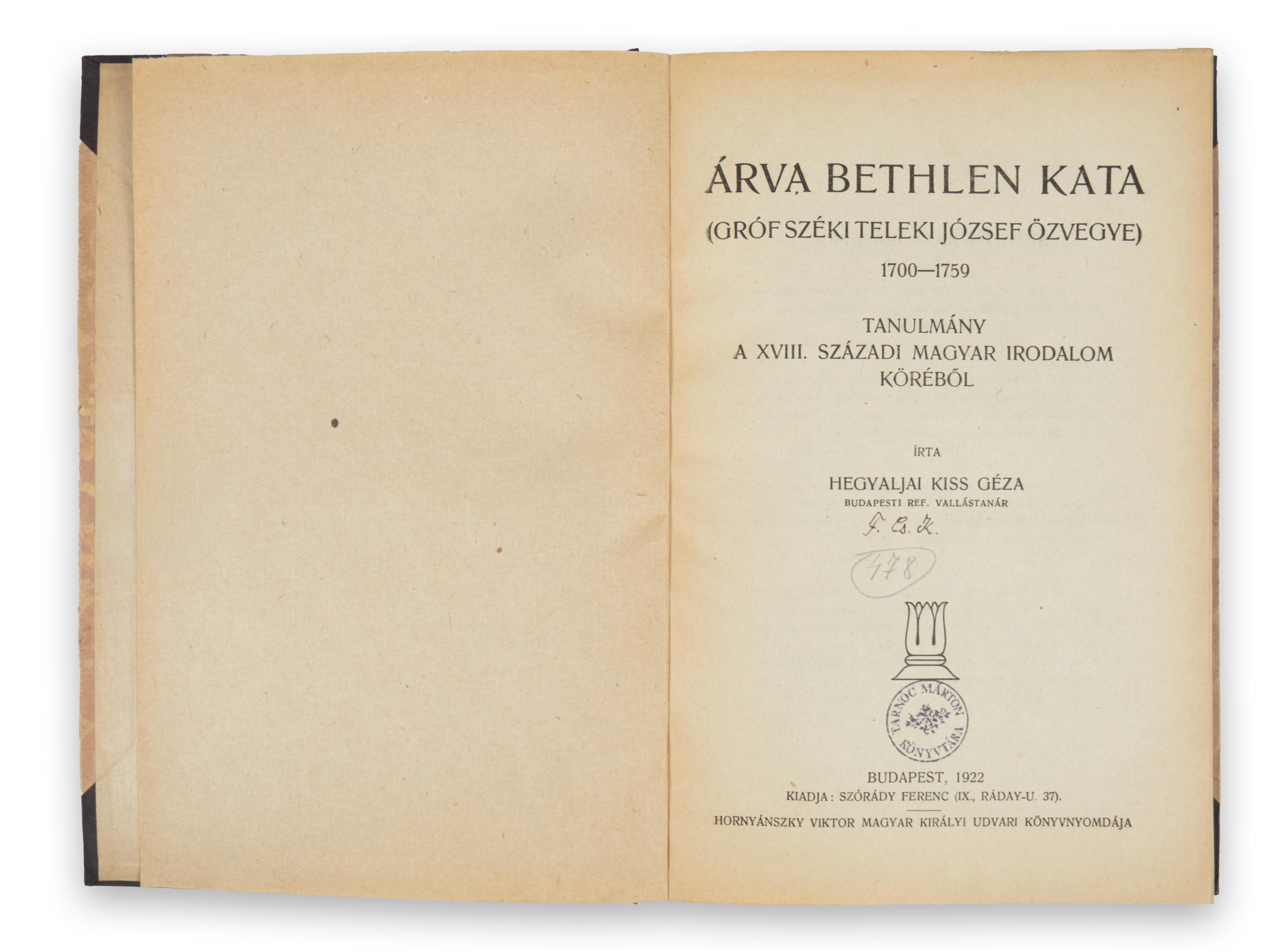 Work on Countess Kata Bethlen de Bethlen (1700–1759). Katherine Bethlen was one of the earliest Hungarians to write memoirs.