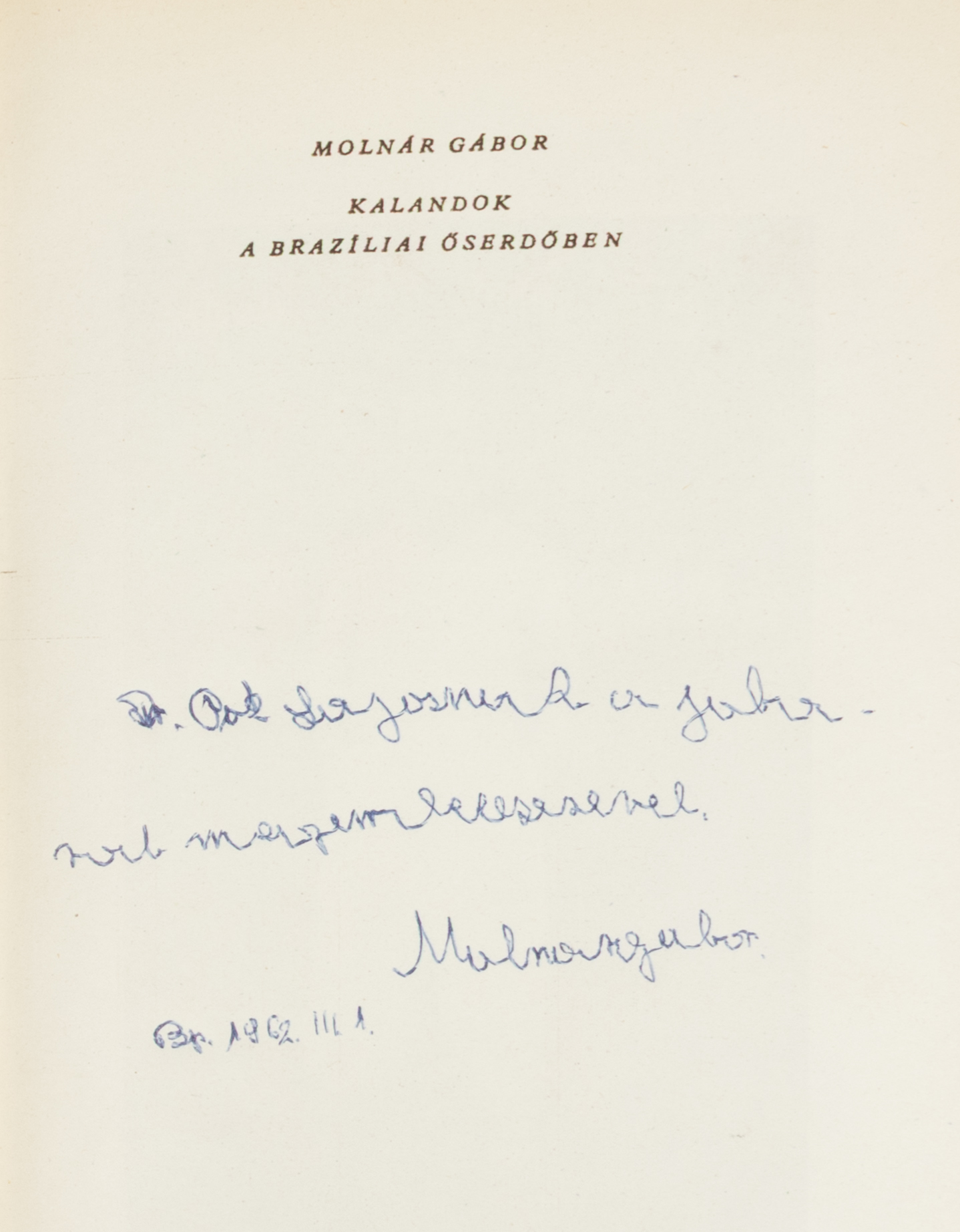 Molnár Gábor (1908-80) a 20. század egyik legnépszerűbb magyar vadász- és útleírás-írója, akinek műveit több nyelvre lefordították. Számos regényt, rádiójátékot írt. Legelső műve 1940-ben jelent meg. Műveit vakon írta miután egy balesetben elvesztette a látását. Haláláig nagyon aktív volt a magyarországi írói életben.
