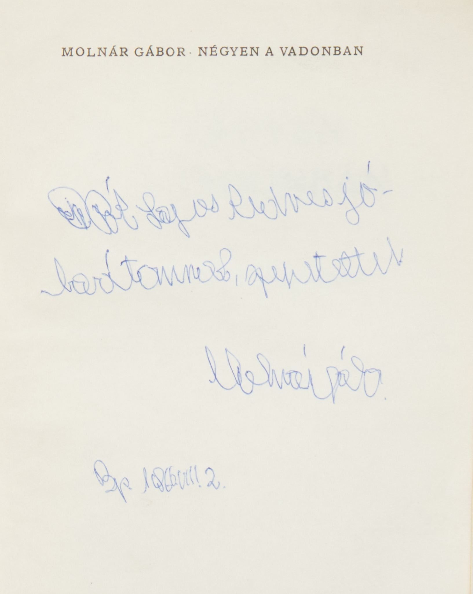Molnár Gábor (1908-80) a 20. század egyik legnépszerűbb magyar vadász- és útleírás-írója, akinek műveit több nyelvre lefordították. Számos regényt, rádiójátékot írt. Legelső műve 1940-ben jelent meg. Műveit vakon írta miután egy balesetben elvesztette a látását. Haláláig nagyon aktív volt a magyarországi írói életben.