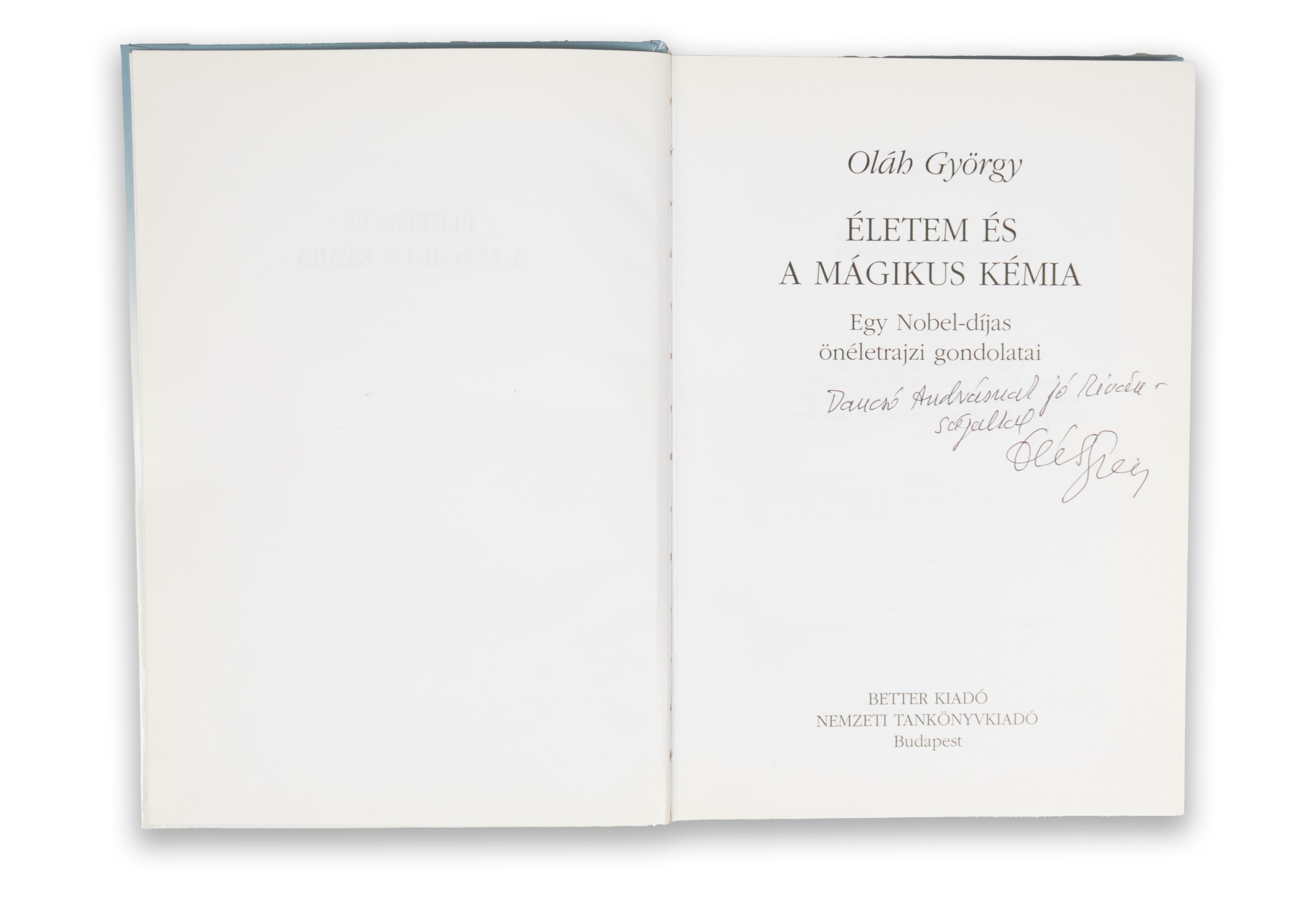 Budapest, 2002, Better kiadó-Nemzeti Tankönyvkiadó [Gyoma, Kner]Címlapján dedikált példány! [14] + 320 p. Számos fényképpel és képlettel illusztrálva. A kötet megjelent Oláh György születésének 75. évfordulójára. Fordítás alapjául szolgáló kiadás: George A. Olah - A life of magic chemistry. Autobiographical reflections of a Nobel Prize Winner. 2001. Fordította Zsengellér Annamária és Pálinkás János.