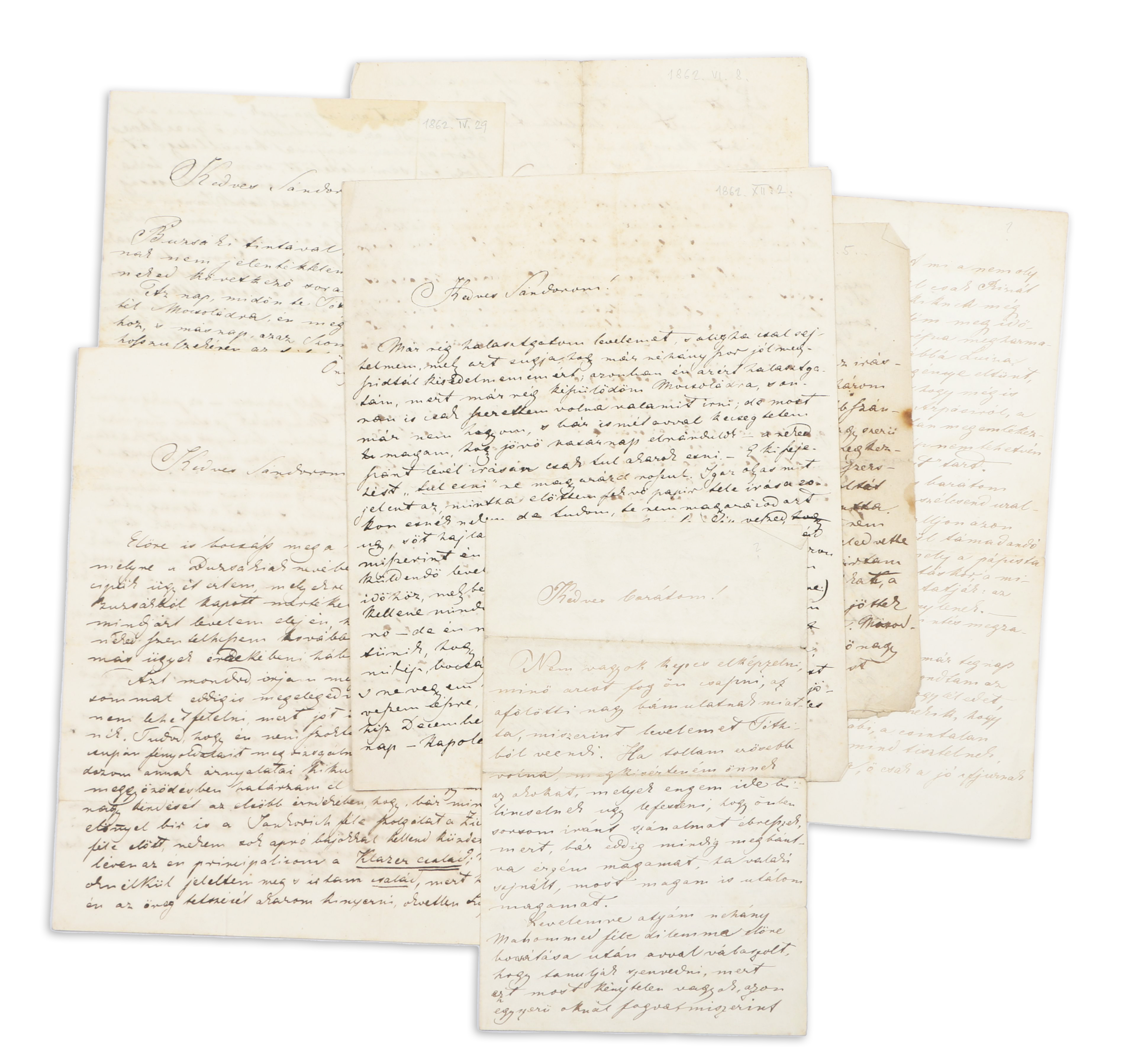 2 db = 3 folio, 6 beírt oldal. Kézirat a korból fakadó foltosodással és apróbb szakadásokkal.