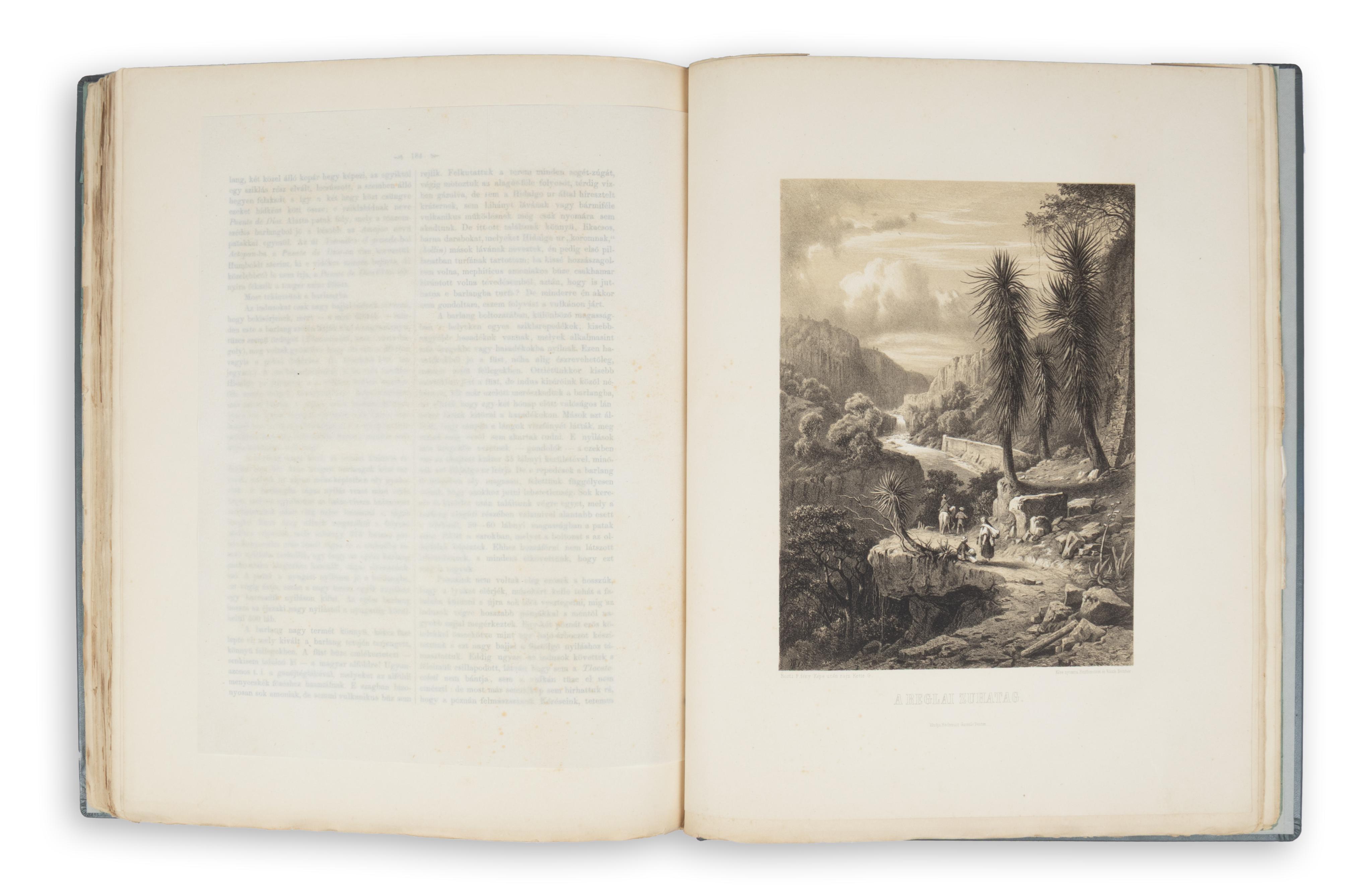 Pest, 1861, Heckenast Gusztáv[6] + 1 lith. t. díszcímlap + 198 + [2]p. + 14 lith. t. (12 tónusos lithográfia, kettő színes, felragasztott) + 1 kétosztatú acélmetszet. Első kiadás. A magyar utazási irodalom egyik legszebb darabja.