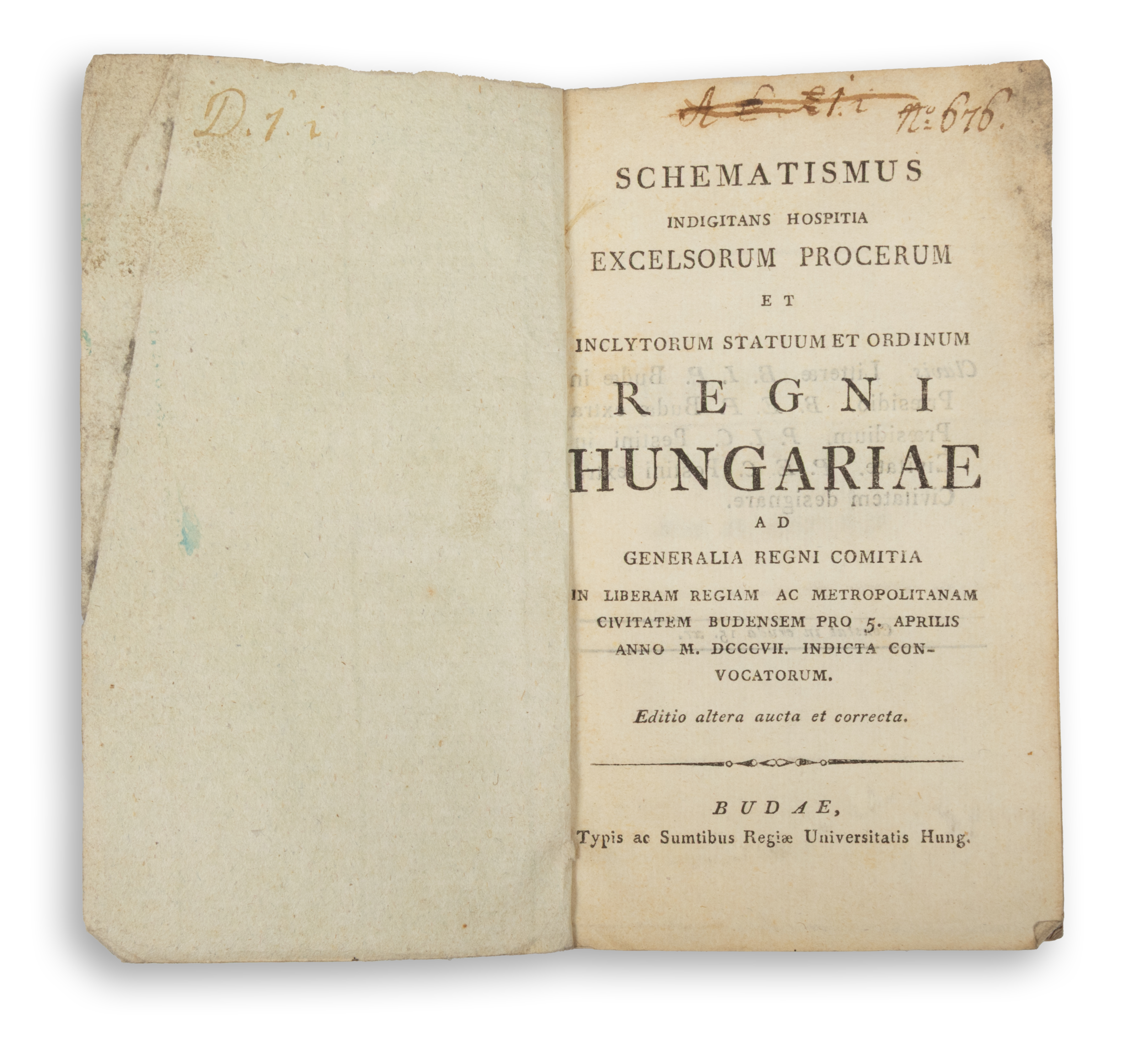 Schematismus indigitans hospitia excelsorum procerum et inclytorum Statum et Ordinum Regni Hungariae...