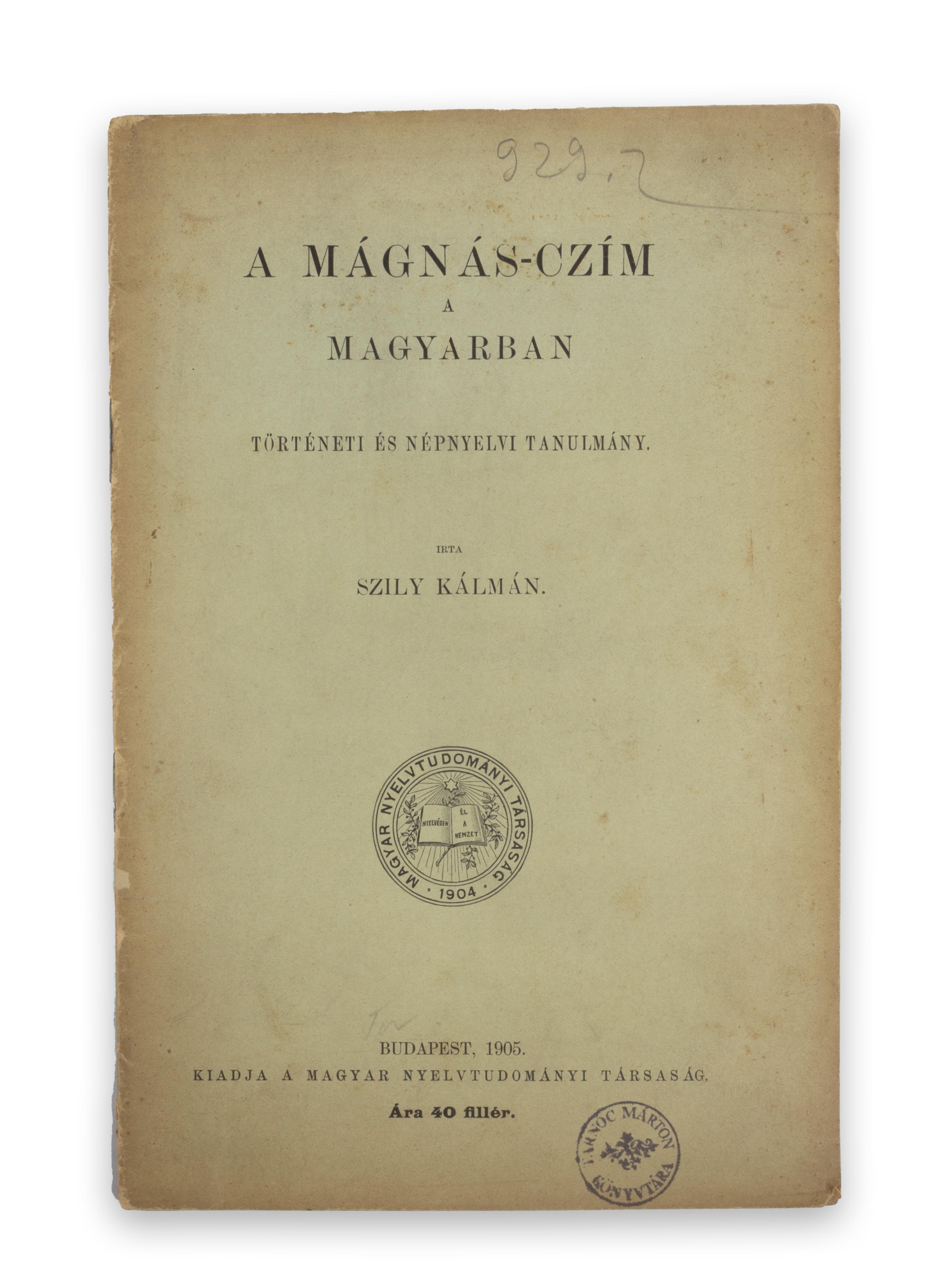 Budapest, 1905, Magyar Nyelvtudományi Társaság [Hornyánszky]Ár
