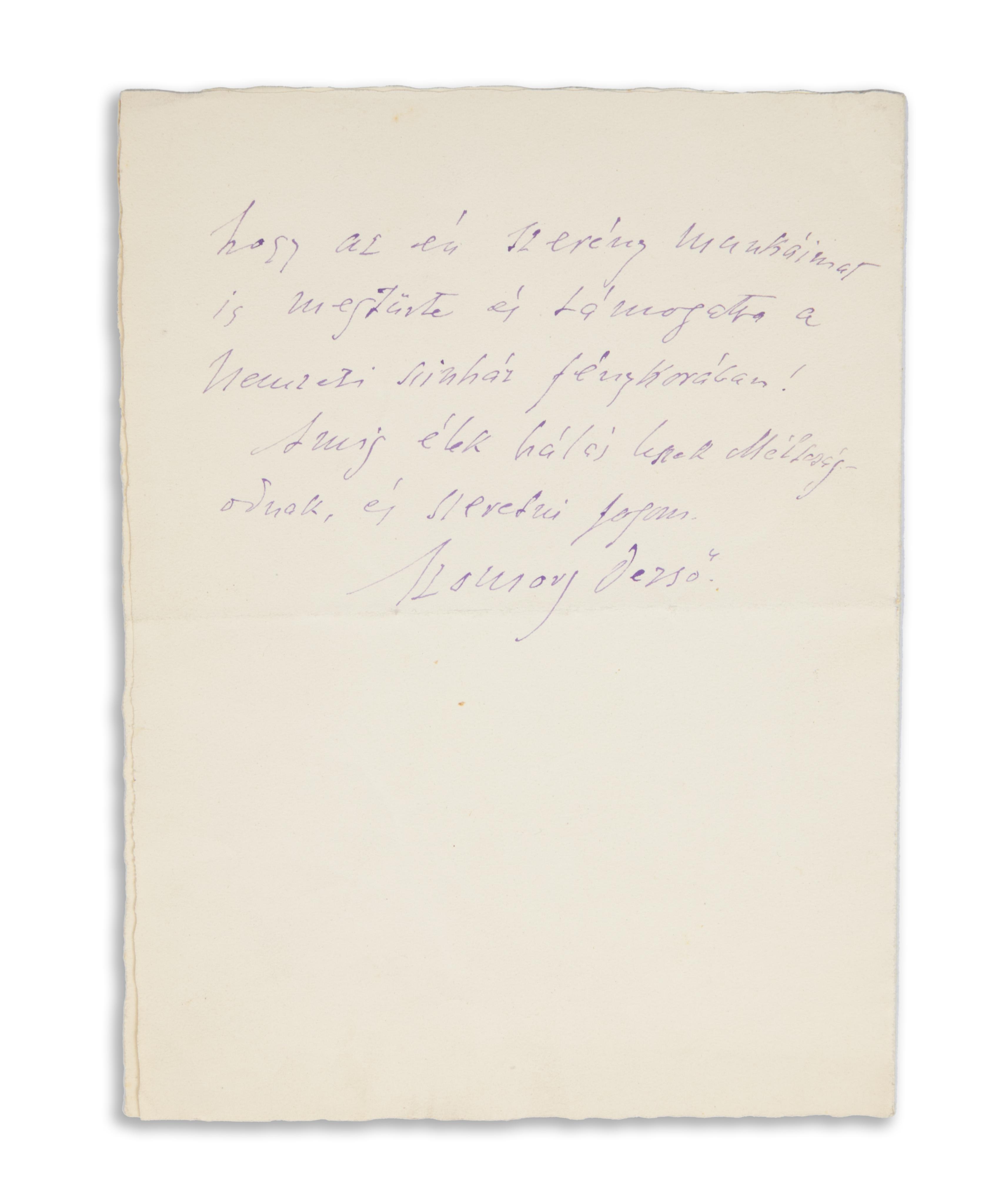 Autograph letter by Hungarian writer Dezső Szomory to unknown person.